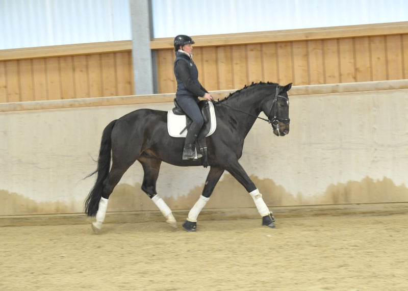 Schicker Allrounder mit Erfolgen und Platzierungen in den Klassen L+M ist er ein erfahrenes Dressurpferd und überzeugt in seinem Niveau, lektionssicher und mit super Einstellung. Als Empfehlung für den anspruchsvollen Dressurreiter ist er angenehm zum Reiten mit seiner traumhaften und bequemen Gallopade macht er das Taxieren sehr einfach.