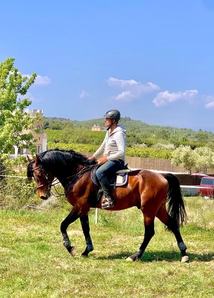 Ho il mio Leon da 10 anni. Non ha mai mostrato comportamenti da stallone, spesso si trova accanto alle fattrici o va con loro in passeggiata. Non si è mai ammalato. Una volta ha subito una ferita da zoccolo nel paddock, che ha portato alla formazione di chip. Questi sono stati rimossi con un intervento chirurgico all'età di 6 anni. Da allora viene regolarmente montato a scopo ricreativo. Qualche settimana fa ha partecipato, con una cavaliere alle prime armi, a una prova di dressage E e a un salto E, ottenendo entrambi dei piazzamenti! Adora fare uscite in passeggiata. In generale, è un cavallo piuttosto tranquillo e pacato. Per questo motivo è molto adatto a cavalieri timorosi o principianti. È molto simpatico, molto bello, molto mansueto nel rapporto, forgiato e tranquillo anche al carico e alla ferratura. Una delle sue attività preferite è sicuramente mangiare molta fieno 😄 Lo spazio è decisamente più importante del prezzo.