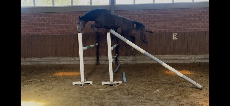 Toller 3 jähriger Wallach von Ogano Sitte. Beim ersten Freispringen zeigt er sich sehr geschickt mit viel Vermögen und Vorsicht. Im Umgang ein Goldschatz. Kennt Sattel / Trense und reitergeweicht. Lebt mit gleichaltrigen 24/7 auf der Wiese. Kann jederzeit in der Wiese bei Osnabrück besichtigt werden. Keine Exzemen, Krankheiten ect. Bekannt.