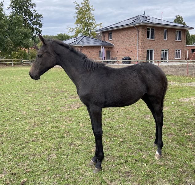 Hello, for sale is my colt, born healthy on May 4, 2025. “Cayman Blue SW” is sired by Charthago Blue OLD (Klatte Stud) out of my eight-year-old mare, Uriko x Cormint. The foal is very friendly and would never kick or bite. He inherits his great character from his father, Charthago Blue OLD, who is currently being successfully presented at competitions by the young Johanna Klatte. I started riding his mother myself in early 2023 when she was six years old, and she was always very well-behaved. Unfortunately, due to my job, I no longer had the necessary time to further develop her, so I decided to have her bred. In the jumping arena, the mare always showed bravery, focus, and was always ready to jump from any position. She always wanted to get to the other side and never stopped. With these two amazing and talented horses as parents, I have a lot of confidence that the foal will not only jump exceptionally well but will also possess a very honest and wonderful character. On June 21, 2025, the little guy was already able to show himself from his best side and was awarded at Klatte Stud. The entire presentation can also be found on Clip My Horse. The mare is also for sale, as I would like to switch to ponies. If you are interested, please feel free to send me a message or contact me directly via WhatsApp at: 0151-62483437
