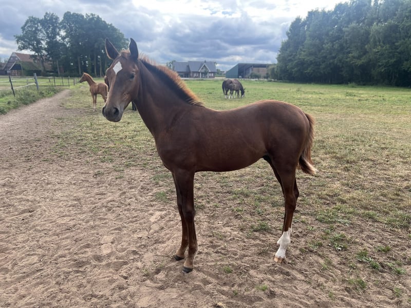 Zum Verkauf steht ein besonders typvolles, langbeiniges Hengstfohlen, das mit der Fohlenprämie ausgezeichnet wurde. Vater ist Coeur Rouge, ein moderner Sohn des Ausnahmehengstes Casall aus einer Conthargos-Mutter. Diese Anpaarung vereint zwei der erfolgreichsten Springvererber der Welt und steht für Rittigkeit, Vermögen und sportliche Qualität auf höchstem Niveau. Mütterlicherseits bringt Quicksilber weitere Leistungsbereitschaft, Geschmeidigkeit und schnelle Reflexe in die Veranlagung. Das Fohlen überzeugt bereits jetzt mit einem harmonischen, modernen Körperbau, einem kraftvollen und raumgreifenden Galopp sowie einem sehr aufmerksamen und menschenbezogenen Charakter. Es zeigt ein korrektes Fundament, klare Gelenke und eine aktive Hinterhand, die für den Springsport prädestiniert ist.
