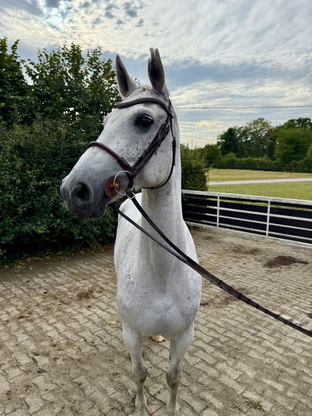 For sale is this stunning and completely honest 9-year-old mare named "Lovers Last Lady." She stands approximately 1.65 meters tall and is an ideal horse for transitioning riders or amateurs. She is absolutely straightforward and fearless in daily handling. She forgives rider mistakes and is always honest, yet very gentle to ride. She has won at A-level show jumping, placed at L, and competed at M. She is still completely unspoiled and has been introduced to competition in a targeted and gentle manner. The mare has a small cosmetic flaw—a slit in her ear—that does not affect her in any way. Because of this, we affectionately call her "Schlitzohr" (trickster). She jumps everything—no matter what is in front of her—and always, from any situation. An absolute reliable partner and a fantastic teacher. The mare has been recently shod and is in excellent health. For serious inquiries, please feel free to contact me at the following phone number: 015206158953.