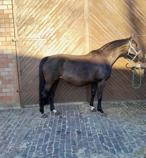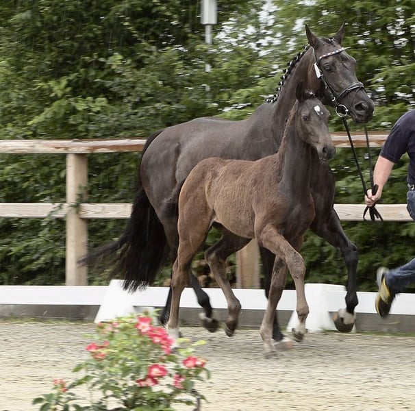 Beautiful 11-year-old broodmare seeking a loving home. She is being offered only due to retirement from breeding. Currently in foal to Especial for Fun Z, a son of the legendary Fit For Fun, who became an international top sport icon under Luciana Diniz. Last year, Diara delivered a premium foal by Baloutaire, which placed at the Oldenburg Foal Championship. The mare is well-behaved, free of vices, and in good health. She has a minor cosmetic blemish on her forehead that does not affect her in any way. A half-brother from Quidams Rubin has competed successfully up to 1.40 m. The family has produced auction foals and approved stallions such as Sir Salut by Salut and Comero by Comme Il Faut, also up to 1.40 m. Price includes the foal. Viewing possible by arrangement. Foaling is scheduled for this month. A video of the 2025 foal inspection is available upon request.