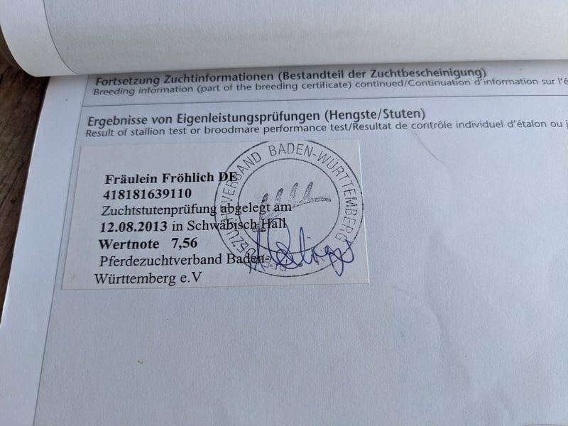 Beautiful brown State Premium mare available for the best of hands. Mare performance test score: 7.56. I am now looking for a new 5-star home for my wonderful brown mare. After a minor sports injury, I no longer wish to bring her back into show jumping. Currently, she is enjoying long hack rides and walks at a walk, during which she is very well-behaved. We have also always spent a lot of time in the countryside, and after full recovery, she would make an excellent leisure horse. She has always loved long rides, whether alone, in pairs, or in a group, and has proven to be very steady-minded. There is definitely room before price. We look forward to serious inquiries. No dealers or riding schools, please.