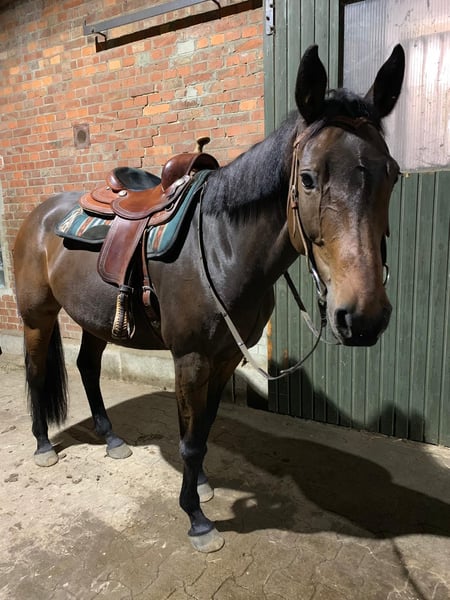 Our Acadia is looking for a new home with a heavy heart. Due to a serious illness of our 6-month-old son, we are unfortunately no longer able to give her the care she deserves. I have been in the hospital around the clock for the past six months. Acadia can also stand for two weeks without riding and then be ridden again immediately. Currently, however, even basic care for our mare is hardly possible. Therefore, we are seeking a wonderful new home for our Oldenburg mare. The last time she was ridden was a year ago, so she would need to be retrained. I see her primarily suited for therapeutic riding or leisurely trail rides, as her arthrosis can sometimes cause discomfort. She is a very reliable, people-oriented horse, familiar with children, and unshakable in her nature. She is comfortable riding bareback, going on holidays, and riding bitless in the field – she knows almost everything and is easygoing with any antics. In groundwork and free work, she is very sensitive and enjoys working with people. Due to her arthrosis in the carpal joint, jumping, tight turns, and similar activities are no longer possible. She would be ideally suited as a companion horse or for relaxed trail rides. She does not require medication. She is barefoot and wears hoof boots for rocky terrain. I acquired her eight years ago from her previous owners, who trained her themselves and competed in jumping, dressage, and eventing up to L/M level. The arthrosis existed already eight years ago and has not worsened during this time. It is very important to me that she does not end up at a slaughterhouse or with a dealer, but in loving hands. I am generally not asking for money; as a protection fee, I would like to sell her equipment (blankets, bridle, etc.) including the saddle for €500. Absolutely priority is her well-being over price. Depending on the circumstances, I could also consider lending her out. I am happy to organize transportation and would cover at least half of the costs, depending on distance and expenses.