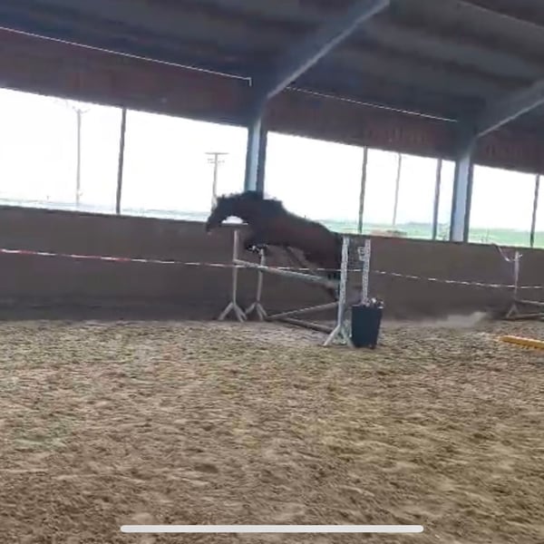 Zum Verkauf steht eine braune talentierte Jungstute von Chaplin x Valentino, welche jetzt bereit ist in ein neues Zuhause zu ziehen und weiter gefördert werden kann. Charakterlich ist die junge Stute, welche im März vier Jahre alt wird, einwandfrei. Sie wird in allen drei Grundgangarten geritten, wobei sie alles super mitmacht. Der Vater Chaplin ist selber ein hocherfolgreiches Springpferd unter Martin Fuchs mit zahlreichen Siegen auf 5 Sterne NIveau, darunter ein Weltcup Finalsieg, sowie drei Global Champion Tour Siege. Der Muttervater Valentino hat 50 Platzierungen und Siege bis zur schweren Klasse 3 Sterne S. Die Mutter Victoria`s Secret war selber in der Klasse M Springen erfolgreich, Vater Valentino / Pluspunkt /Pilot. Charakterlich ist die Stute Valentina einwandfrei, regelmäßig entrumt, geimpft und dem Hufschmied vorgestellt. Seid einer Woche wurden kleine Sprünge unter dem Sattel absolviert, wobei Valentina einen sehr guten Zug gegen das Hindernis zeigte. Sie bemüht sich sehr dem Reiter alles richtig zu machen. Jetzt ist sie bereit in fördernde Hände zu gehen. Ein Probereiten ist jederzeit möglich.