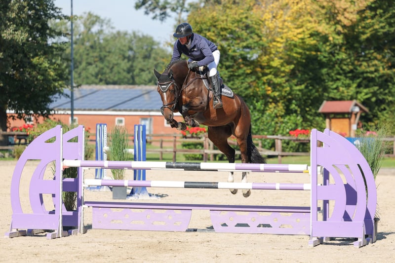 For sale is a beautiful six-year-old bay mare from an excellent lineage: Tobago Z x Cornet's Prinz x Grannus. This mare only entered the sport at the age of six and has since impressed on all levels. She is highly cooperative, works well with the rider, and captivates with her exemplary attitude, rideability, and awareness. A true prospect for the future – suitable for both the ambitious amateur and the professional looking for a horse with quality and heart. Her correct conformation, top-notch pedigree, and pleasant temperament make her a true dream mare, and we have high hopes for her.