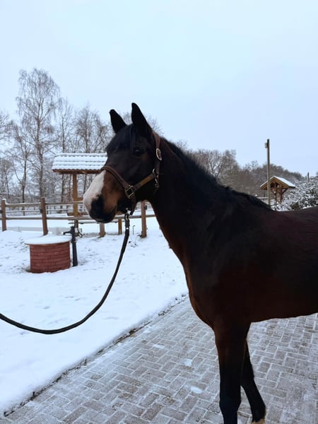 For sale is a 7-year-old Oldenburg mare, unridden, with an interesting show jumping pedigree. Her dam was successful at S-level in show jumping, which means the mare carries valuable Holsteiner performance bloodlines on her maternal side. The mare exhibits minor deviations in her conformation, which are due to intrauterine positioning. This is communicated openly and honestly. She has already produced two very correct and healthy foals. Therefore, she is especially suitable for breeding. The mare will only be entrusted to loving and experienced hands; this is not a desperate sale. If you are interested or require further information, please feel free to contact me. A personal meeting is always possible.