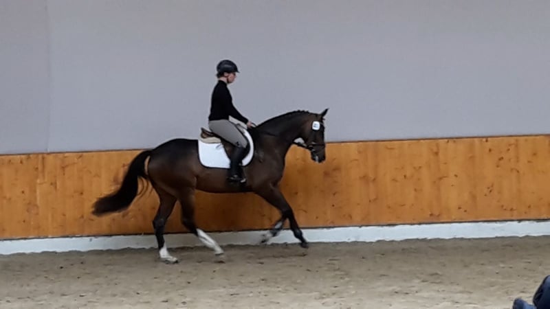 Wir verkaufen schweren Herzens unsere 8-jährige OS-verbandsprämierte Springstute von Balou Peggio aus der S** erfolgreichen Elitestute Sevana von Silvio I - Cosinus - Vollkorn xx - Manolete xx. Wir haben die Stute selbst gezogen und ausgebildet. 4-jährig brachte sie ein top Hengstfohlen von Asca Z für die Herbsteliteauktion in Vechta. Sie sollte aufgrund der sehr guten Rittigkeit, Charakter und Größe (1,64) das Nachwuchspferd für unsere 11-jährige Tochter werden. Leider hatte sie im vorletzten Jahr eine Verletzung (Knorpelschaden im Ellenbogengelenk - tierärztlicher Befund liegt vor), daher ist ein Einsatz als Springpferd nicht mehr möglich. Wir verkaufen Sie aufgrund ihrer guten Abstammung vorrangig als Zuchtstute, können sie uns aber auch als tollen Freizeitpartner zum Spaß haben vorstellen (aufgrund ihrer Verletzung haben wir sie allerdings seit letzten Sommer nicht mehr geritten). Nur in gute Hände! Keine Händler!
