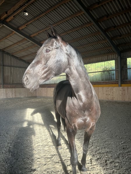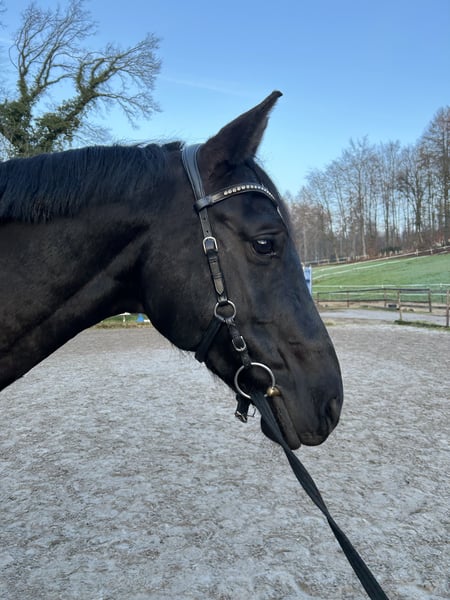 Schweren Herzens suche ich ein gutes Zuhause für meine fast 9 jährige Oldenburger Springpferde Rappstute (168cm). Namira kam im August 2022 als Problempferd zu mir. Da ihre vorherige Ausbildung offensichtlich nicht auf ihre Bedürfnisse angepasst worden ist, habe ich damals bei 0 neu angefangen. In den letzten 3,5 Jahren haben wir den Fokus fast ausschließlich auf den Umgang im Alltag, der Boden-,Longen-und Freiarbeit gelegt. Mit dem Ergebnis, dass sie sehr fein und leicht-aber bestimmt zu Händeln ist. Dabei arbeitet sie sehr motiviert und eifrig mit und will gefallen. Ich habe sie damals mit dem Status „angeritten“ übernommen, welchen wir erst im letzten Jahr wieder aufgegriffen haben. Hierbei zeigte sie sich zunächst unbeeindruckt, was sie aber bis zum heutigen Zeitpunkt nicht weiter fortführen konnte. Trotz verschiedener Trainingsansätze ist es uns noch nicht gelungen, ihr die Ruhe und Sicherheit von oben genau so zu vermitteln, wie vom Boden aus. Sie ist keineswegs bösartig, aber die Kompetenzen von mir und dem Team um sie herum, hören hier auf. Gesundheitlich gibt es keine Auffälligkeiten die ihr Verhalten, nur mit Reiter drauf, erklären würden (Mehr dazu im persönlichen Gespräch). Namira ist eine sensible und feine Stute, die das Herz absolut am rechten Fleck hat. Sie behält gern den Überblick und ist in unbekannten Situationen teils unsicher und schreckhaft, aber händelbar. Fühlt sie sich jedoch wohl, schmust sie gern und ist ein richtiger Clown, der einem zum Lachen bringt. Sie ist trotz der feinen Ausbildung am Boden, kein Anfängerpferd. Ich suche für sie ein Zuhause, in dem ihr die Zeit und Rücksicht gegeben wird, die sie braucht, welche ich ihr aufgrund von beruflicher Veränderung leider nicht mehr geben kann, trotz jeglicher Abwägung. Sie wird nur in eine artgerechte Haltung mit viel Auslauf und kleinem Herdenverbund abgegeben. Ich kann sie mir ebenfalls als gesunden Beisteller vorstellen, welcher vom Boden aus Freude macht und wo das Reiten nicht im Fokus liegt. Vielleicht wäre auch die Zucht eine Option. Sie ist geimpft, entwurmt und Barhufer. Händler und Schulbetriebe sind ausgeschlossen. Platz vor Preis hat höchste Priorität, da es mir wichtiger ist, dass sie ein Zuhause findet, in dem sie trotz ihrer Vorgeschichte und einhergehenden Probleme geschätzt und geliebt werden darf.
