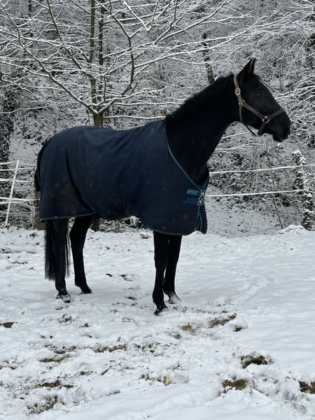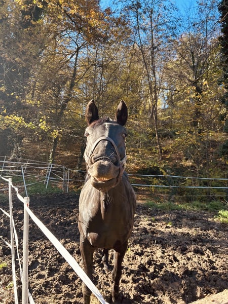 Cœur lourd, je cherche une famille pour ma jument de dressage Oldenburger, Rappstute, âgée de presque 9 ans (168 cm). Namira est arrivée chez moi en août 2022 en tant que cheval en difficulté. Son entraînement précédent n’étant manifestement pas adapté à ses besoins, j’ai dû repartir de zéro. Au cours des 3,5 dernières années, nous avons principalement travaillé sur sa gestion au quotidien, le travail à la longe, en liberté et au sol. Résultat : elle est très fine, sensible et facile à manipuler, mais ferme. Elle travaille avec motivation et enthousiasme, et souhaite faire plaisir. Je l’ai reprise avec le statut « monté » que nous avons commencé à retravailler l’année dernière. Au début, elle semblait indifférente, mais cela n’a pas duré. Malgré différentes approches d’entraînement, nous n’avons pas encore réussi à lui transmettre la même confiance et sérénité à cheval qu’au sol. Elle n’est en aucun cas méchante, mais nos compétences, ainsi que celles de l’équipe qui l’entoure, atteignent leurs limites. Sur le plan de la santé, il n’y a aucune anomalie qui expliquerait son comportement uniquement avec le cavalier (plus d’informations lors d’un entretien privé). Namira est une jument sensible et délicate, qui a un cœur en or. Elle aime garder un œil sur son environnement et peut être un peu hésitante ou craintive dans des situations inconnues, mais elle reste manipulable. Lorsqu’elle se sent à l’aise, elle adore recevoir des caresses et se montre très drôle, apportant la bonne humeur. Malgré une éducation soignée à la longe, ce n’est pas une monture pour débutants. Je souhaite lui offrir un foyer où elle pourra bénéficier du temps et de la patience dont elle a besoin, ce que je ne peux plus lui donner en raison d’un changement professionnel, malgré toutes mes réflexions. Elle sera confiée uniquement à une pension adaptée, avec beaucoup d’espace et un petit groupe de chevaux. Je peux également envisager qu’elle serve de compagnon sain, apportant de la joie au sol, sans nécessairement monter. La reproduction pourrait aussi être une option. Elle est vaccinée, vermifugée, et pieds nus. Les vendeurs et les centres de formation sont exclus. Priorité absolue à l’adoption, car il est essentiel pour moi qu’elle trouve un foyer où elle sera aimée et appréciée, malgré son passé et ses difficultés.