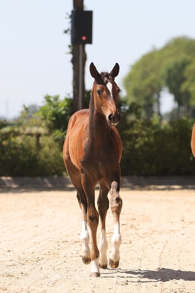 Easy Jet x Landor S, geb. 10.04.2025, braun, Stute Easyroos H vereint sportliche Qualität mit einem herausragenden Interieur. Sie stammt aus der Vollschwester des gekörten Hengstes Lycos (Landor S x Zeus) – eine bewährte, leistungsstarke Mutterlinie. Diese typvolle, großrahmige Stute zeigt sich elegant, lernwillig, freundlich und absolut unkompliziert im Umgang. Bei der Nachzuchtbewertung ihres Vaters wurde sie als Reservesiegerin herausgestellt. Ideal für Reiter*innen, die in ein zuverlässiges Nachwuchspferd mit Perspektive investieren möchten. Ob Sport oder Zucht – Easyroos H bringt beste Voraussetzungen mit. 🔹 Top-Pedigree (Easy Jet x Landor S x Zeus) 🔹 Bewegungsstark & menschenbezogen 🔹 Großrahmig, korrekt gebaut 🔹 Ruhig im Wesen – einfach im Handling 🔹 Interessant auch für die Zucht 👉 Jetzt vormerken und ein echtes Zukunftstalent sichern!