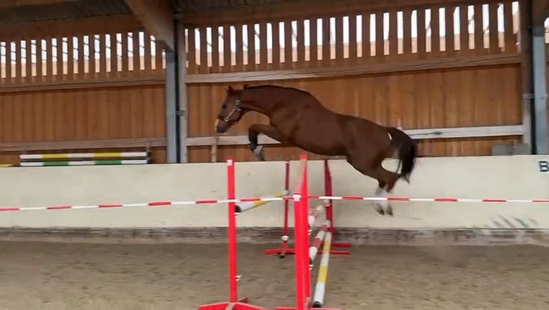 Extrem feiner, Sehr intelligenter und sensibler, Partner in Crime. Wacher, freundlicher Charakter. KEINE ANFÄNGER!!!! Nur für sehr feine, ruhige Reiter, grobe Hand oder unfaire Methoden und du fliegst. Super lieb, extrem Menschenbezogen. Ein Personen Pferd! Gezüchtet und Aufgezogen bei Schockemöhle. Chacco Blue /Clarimo /Sandro Boy Mit etwa 6 Jahren gelegt, davor gekört. Eine Hinterhand die seinesgleichen sucht. Übersicht am Sprung. Mutig. Springt jedoch nicht kopflos. Wenn er das Gefühl hat, du bist unsicher, entscheidet er. Kein Steiger. Er braucht liebevolle, aber konsequenten Umgang. Warum verkaufe ich? Nicht leichtfertig. Hatte vor Monaten einen schweren Reitunfall mit meiner Stute, kurz danach verunglückte mein Mann. Näheres gerne persönlich. Ein Schmuser und Clown durch und durch. KEINE HÄNDLER! , KEIN "LETZTER PREIS"