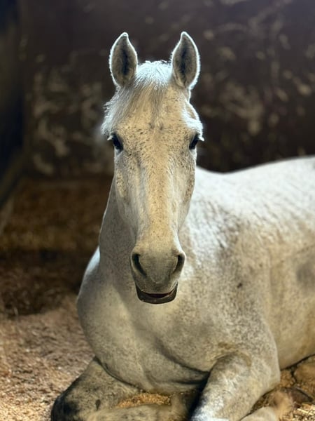 Hallo, mijn naam is Cosby. Ben je op zoek naar een nieuwe vriend en een trouwe partner op vier benen? Dan denk ik dat we elkaar beter moeten leren kennen. Ik ben een echte gezelschapspartner en met mijn 13 jaar ben ik op de perfecte leeftijd. Aangezien ik in het verleden al enkele eigenaren heb gehad, vinden ik en mijn familie het heel belangrijk dat ik een goede plek vind waar ik me helemaal thuis voel. Ik ben heel mensgericht en ik hou ervan om verwend te worden. Of je nu zin hebt om me urenlang te poetsen, met me te wandelen of te knuffelen – ik hou van alles en ik word ontzettend blij als mijn mens tijd met me doorbrengt. Ik geniet van grondwerk en kalmheidstraining, en mijn eigenares zegt dat ik een heel moedige en geduldige jongen ben. Vroeger was ik een springpaard en heb ik via mijn eigenares een zeer goede dressuuropleiding genoten, tot aan de 2e wissel. Omdat ik momenteel een bekende aandoening in mijn voorbeen heb die goed wordt gemanaged, wordt ik expliciet niet als springpaard, maar als vrijetijdspartner herplaatst. Ik haal veel plezier uit regelmatige, aangepaste arbeid onder het zadel en ik ben daarbij braaf en altijd coöperatief. Omdat ik geen slaapmiddel ben, zou ik niet geschikt zijn voor een absolute beginner. Ik ga graag met een vriend het bos in en ben daarbij echt braaf. Alleen ben ik soms wat onzeker. Ik voel me het beste onder een gevoelvolle, geduldige en evenwichtige ruiter. Ik ben schoeffijn en laadbaar. Ik zal alleen worden herplaatst binnen een straal van 100 km, zodat mijn huidige familie mij kan bezoeken. Herplaatsing gebeurt uitsluitend met een beschermingscontract. Voor meer details hoor ik graag in een persoonlijk gesprek.