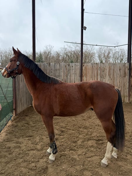 For sale: a well-mannered, beautiful gelding born in March 2022 with excellent jumping pedigree. Sire: Chacoon Blue (Chacco Blue) Dam: Emerald van het Ruytershof (Diamant de Semilly) He has correct conformation, a good temperament, is easy to handle, and very people-oriented. Backed for 3 months – working in all gaits in the arena, going over cavaletti, and showing himself to be a friendly, willing, and straightforward horse. Works both alone and with other horses, leaves the group without hesitation, and stays calm. Shows strong jumping potential at liberty. Raised in a box/paddock system. Non-conflictual in the herd. With supervision, he will be suitable even for a less experienced rider. Used to the farrier. X-rays clean. Contact: +421 907 406 678 More information and videos available via WhatsApp.