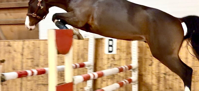 Bildhübsches, modernes Nachwuchsspringpferd von Dourkhan Hero Z (GCT 1.60m mit Christian Ahlmann) x Stakkato x Drosselklang II. Seine Großmutter von Drosselklang II war international CSI*** erfolgreich. Dourkati ZD ist 2022 geboren, ist sehr rittig und überzeugt bereits jetzt durch seine außergewöhnlich gute Einstellung. Er zeigt sich stets unkompliziert, kooperativ und sehr menschenbezogen. Unter dem Reiter ist er angenehm zu sitzen und absolut amateurfreundlich. Sein Charakter ist aussergewöhnlich und seine Farbe macht ihn sehr besonders.. Seine Abstammung vereint modernes Springblut mit bewährten Leistungslinien und bringt damit beste Voraussetzungen für eine sportliche Zukunft. Aufgrund seines Charakters eignet er sich sowohl für ambitionierte Amateure als auch für Profis, die ein unkompliziertes Nachwuchspferd oder einen Hunter suchen. Ein sehr typvoller Wallach mit Charme, Qualität und Perspektive. https://www.zanddynasty.de/sportpferde/dourkati-zd www.zanddynasty.com Wir züchten mit Stuten bester Genetik in Anpaarung mit sporterfolgreichen Hengsten, wie Baloubet du Rouet, Casall, Clarimo, Cornet Obolensky, Diamant de Semilly, Dominator 2000 Z, Dourkhan Hero Z, Eldorado van de Zeshoek, Kannan, Nabab de Reve, Quidam de Revel und Taloubet Z und haben daraus Nachwuchspferde, von Fohlen bis zu erfolgreichen Sportpferden. Bei Interesse melden Sie sich gerne +49.173.3074429 oder info@zanddynasty.com.