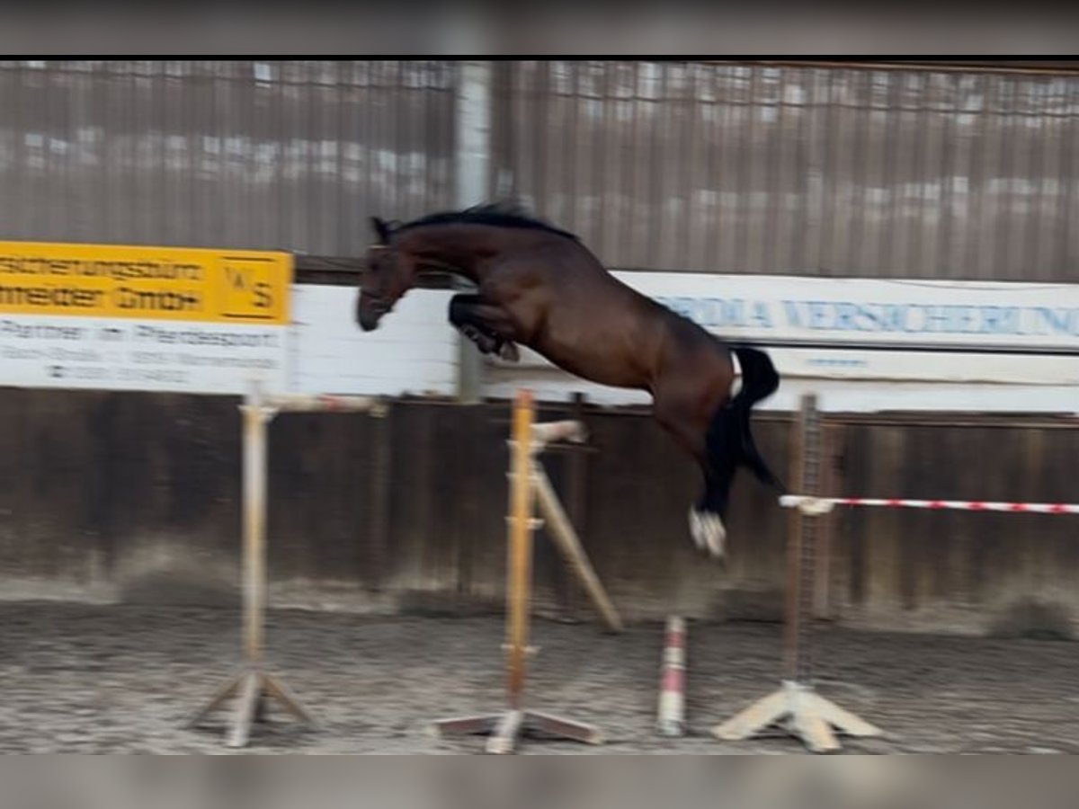 Selbstbezogen macht unser 4 jähriger Wallach von Empire seine ersten Sprünge unter dem Sattel. Er ist leichtrittig, lernt schnell, ist sehr gut im Umgang und hat einen tollen Sprungablauf mit Vorsicht bei viel Vermögen.