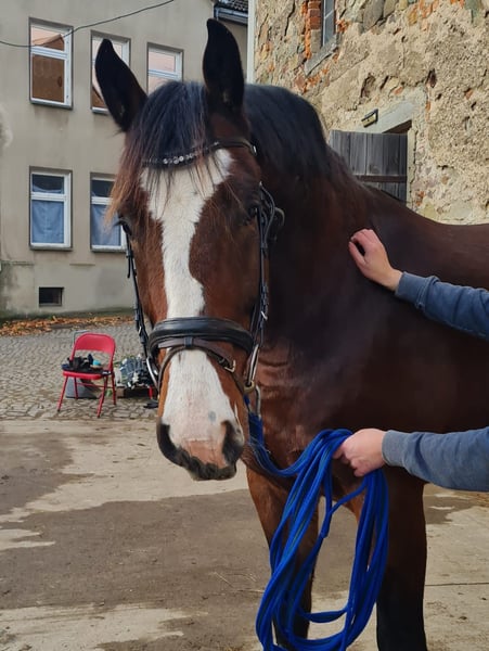 Dieser imposante Wallach zieht mit seiner Erscheinung alle Blicke auf sich. Trotz dass er kräftig im Hengsttyp stehend sich präsentiert hat er kein Interesse an Stuten , steht mit diesen auch gemeinsam im Stall und zeigt sich rangmittig. Er ist eine Seele vom Pferd aber keines Falles stumpf. Bei ihm stimmt Sanftmut und Arbeitswille, macht es jedem Recht und wird gerade auf das Reitpferdeleben vorbereitet ( genauer Stand muss erfragt werden da er sich weiter entwickelt, Preis wird entsprechend ebenso angepasst) . Seine Hauptdisziplin ist das springen, das macht ihm Freude und dort zeigt er auch das größte Vermögen ( bereits über die 1.60m hohe Reitplatzumrandung gehopst) mit soliden Grundgangarten kann er aber auch glänzen so dass er der perfekte Partner für Sport und Freizeit werden kann.