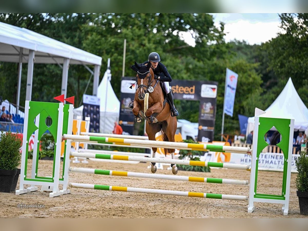 Talentierter 6-jähriger Wallach – erfolgreich bis Springpferde M, Bundeschampionat-Teilnehmer Zum Verkauf steht ein qualitätsvoller 6-jähriger Wallach von Glasgow van ’t Merelsnest x Namelus R. Er ist in Springpferdeprüfungen der Klassen L und M platziert und war Teilnehmer am Bundeschampionat. In diesem Jahr ist er bereits 125 cm fehlerfrei gegangen. Der Wallach überzeugt durch Vermögen, Übersicht und eine sehr gute Einstellung zum Sport. Er zeigt sich rittig, leistungsbereit und mit viel Potenzial für die weitere Förderung im Springsport. Ein spannendes Nachwuchspferd für ambitionierte Reiter. Bei ernsthaftem Interesse freuen wir uns über Ihre Kontaktaufnahme unter: 01724624720