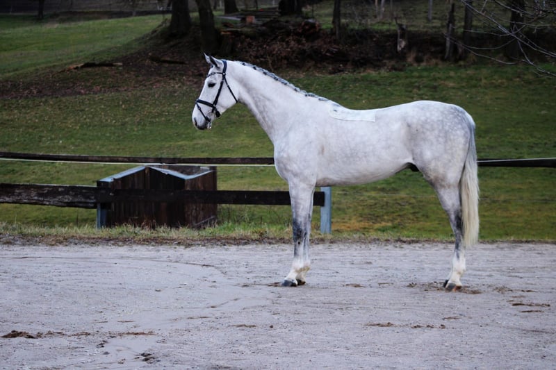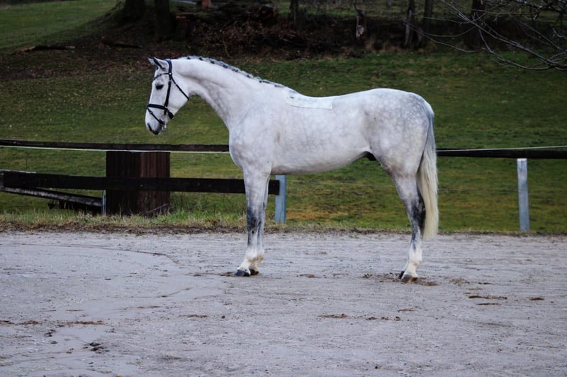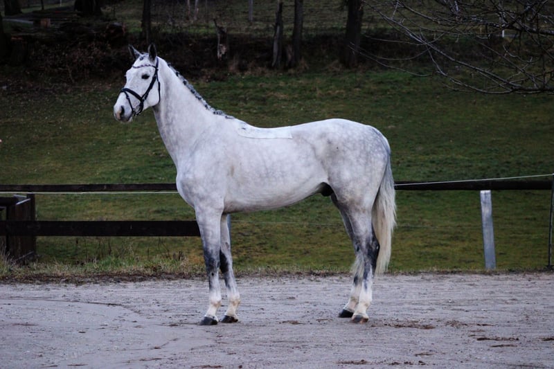Energetic Young Showjumper We can certainly say more than just "big" when it comes to this stunning gelding! A 6-year-old gelding by Diaron out of Chacoon Blue x Kannan x Centauer. His top international pedigree makes rider hearts beat faster. His large-frame trot, excellent jumping technique, and the right attitude towards sport give hope for a successful career as a showjumper. Still unspoiled and recently backed, he has had time to mature and grow. A radiograph report is available and can be sent via email upon request. A veterinary clinical exam can be performed by the buyer. There is a slight breathing sound during canter, which has not affected him so far. Approximate height: 16.1 hh Location: Herchenrode Inquiries please by phone: 0173 3160347