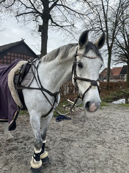 Zu verkaufen steht: 🤍 Clifton 🤍 7-jähriger Wallach 🤍 ca. 1,67 m „Schimmelchen“ ist erst seit drei Monaten bei mir und zeigt sich charakterlich als absolutes Traumpferd. Er überzeugt nicht nur durch sein schickes Aussehen, sondern auch durch seine Offenheit sowie seinen liebevollen und freundlichen Charakter. Beim Reiten ist er meist ein Pferd, das man etwas nach vorne schicken und von der Arbeit überzeugen muss. Im Gelände, auf Turnieren oder in neuen Umgebungen ist er absolut brav. Durch seine eher unsensible Art beim Reiten und seine entspannte Art wäre er ein toller Partner für Freizeitreiter, Wiedereinsteiger oder Umsteiger. Unter einem erfahrenen Reiter kann ich mir Schimmelchen auch sehr gut als zukünftiges Jagdpferd vorstellen. Schimmelchen springt zuverlässig und gut. In der Dressur beherrscht er mittlerweile ohne Probleme fliegende Wechsel und Traversalen. Aktuell trägt er vorne Eisen, kann aber problemlos barhuf gehen. Am liebsten hätte er einen Platz im Offenstall oder in einer Paddockbox. Derzeit steht er in einer Box mit viel Auslauf. Aktuell trägt er vorne Eisen, kann aber problemlos barhuf gehen. Am liebsten hätte er einen Platz im Offenstall oder in einer Paddockbox. Derzeit steht er in einer Box mit viel Auslauf.