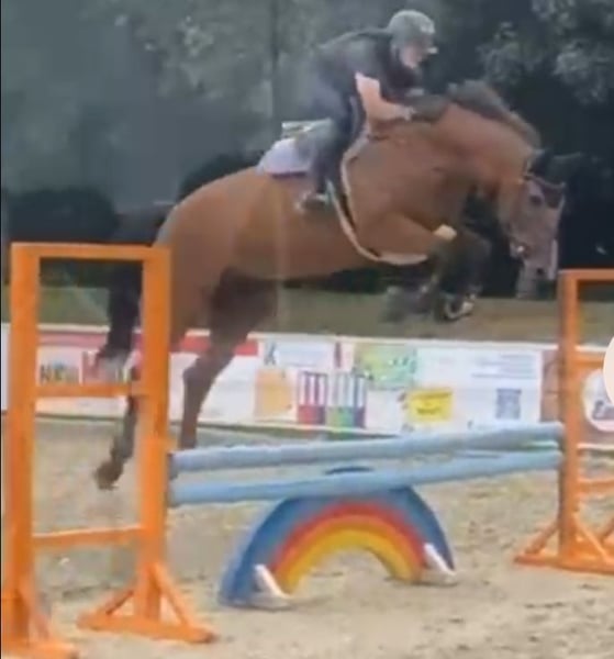 Te koop van particulier, amateur mijn 8-jarige ruin, met veel vermogen, zeer voorzichtig bij de sprong, wil geen fouten maken, die ik op de veiling voor veulens heb gekocht, vanwege het verkleinen van de stal, omdat mijn zoon nu met pony's begint en ik het niet meer kan combineren om zoveel zelf te rijden, zoekt ruiter die hem verder opleidt voor hogere taken. Keuring niet aanwezig. De sprong op de foto is 1,60 m hoog. Informatie graag telefonisch 0163-9271377 Nicola Schmitz.