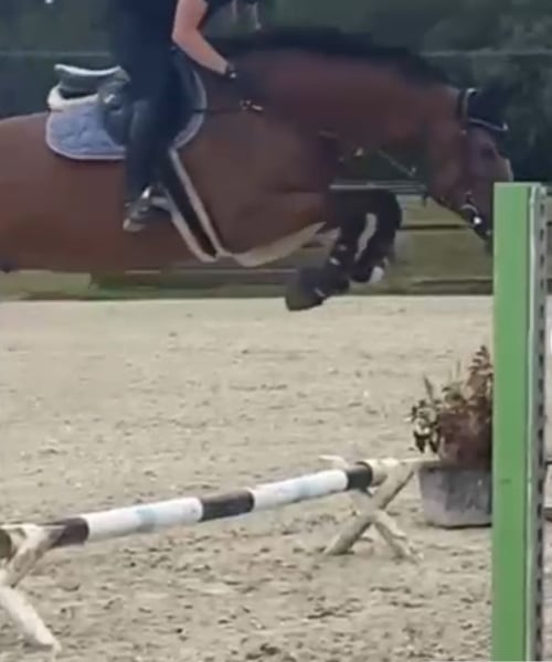 Vente de particulier, cavalière amateur, de mon hongre de 8 ans, avec beaucoup de potentiel. Je l'ai acheté comme poulain lors d'une enchère. Placé en saut d'obstacles. Le saut libre sur la photo mesure 1,60 m. Pour plus d'infos, contactez par téléphone au 0163-9271377 N. Schmitz.