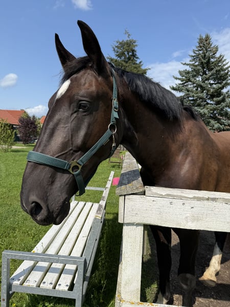 Z powodu absolutnie niepewnego kupca, znów jest dostępny na sprzedaż! Na sprzedaż jest mój obiecujący wałach Alt-Oldenburger/Ostfriese (ciężka krew). Niestety sprzedawany z powodów osobistych. I tylko, jeśli wszystko naprawdę będzie pasować. • Wiek: 3 lata • Wzrost: ok. 178 cm • Kolor: czarny • Stan szkolenia: wstępnie oswojony (zna ciężar jeźdźca we wszystkich trzech chodach), lonżowany, spokojny w obcowaniu • Charakter: związany z ludźmi i jasny w myśleniu • Świetnie reaguje na głos • Uczy się niesamowicie szybko, od razu rozumie, czego się od niego chce • Spokojny podczas załadunku Aktualny wynik badań krwi dostępny ON przekonuje swoim szczerym charakterem i imponującym wyglądem. Dzięki swojej mocnej, okazałej budowie ciała i spokojnemu usposobieniu ma najlepsze predyspozycje do szkolenia jako koń do powozu, ale nadaje się również jako niezawodny partner do rekreacji. Raczej typ leniwy. Oczywiście nie można zapominać, że jest młodym koniem i musi się jeszcze wiele nauczyć. Jeśli chcecie go poznać, proszę napiszcie do mnie wiadomość. Nie jest to sprzedaż z przymusu. Naprawdę trudno mi się z nim rozstać. Mam wszystkie nowe filmy z nim, między innymi jak chodzi po asfalcie. Filmy chętnie na życzenie. W razie pytań mój numer telefonu komórkowego: 015128129900