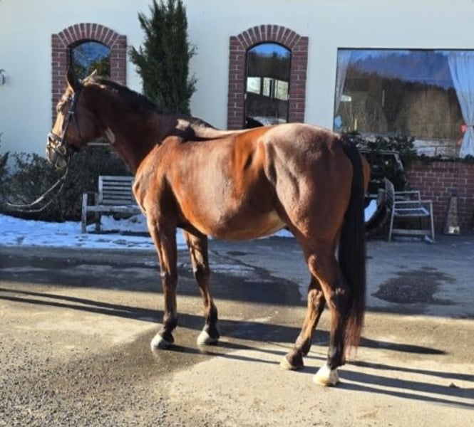 Schweren Herzens, bin ich zu der Entscheidung gekommen meine geliebte Stute, Celina, zu Verkaufen. Ich habe mit ihr meine Prüfungen absolviert, sie hat vor mir bei einigen Turnieren im Bereich Vielseitigkeit teilgenommen und sehr gut abgeschnitten. Sie hat sogar einmal ein Fohlen zur Welt gebracht, was kerngesund und ohne probleme ebenfalls im Reitsport tätig ist. Sie hat bei den vorderen Hufen Eisen und auf den hinteren nicht. Im Sommer leidet sie Leiter unter sommerekzem, was aber voll Unterkontrolle ist. Leider ist sie ein Kopper, aber hat erst einmal Probleme damit gemacht was aber gut behandelt werden konnte. Der Preis ist V.H. und würde ihr gesamtes Equipment mit geben.