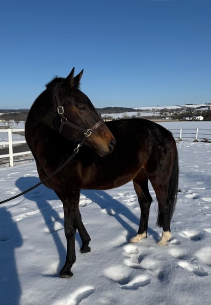 Aufgrund privater Umstände beenden wir unsere Zucht. „Esteva S“, ist eine 14-jährige Österreichische Warmblutstute die bei uns nur als Zuchtstute gehalten wurde. Esteva besticht durch ihre hervorragende Abstammung als Zuchtstute. Väterlicherseits stammt sie von „Don Juan de Hus“ ab. Mütterlich geht sie auf „Don Friedericus LB“ sowie auf „Grundstein II“ zurück. Esteva ist nicht geritten. Sie ist eine freundliche aber charakterstarke Stute, die jedoch eine ruhige und erfahrene Person an ihrer Seite benötigt. Ihren Fohlen vererbt sie ihre ausdrucksstarke Bewegung. Alle Fohlen von ihr sind super umgängliche und freundliche Pferde. Das letztjährige Hengstfohlen, kann im Stall besichtigt werden. Sie ist gesund, ist jedoch auf der Hinterhand weich gefesselt. Dies schränkt sie im Alltag nicht ein. Esteva lebt momentan im Offenstall, kennt auch Boxenhaltung und freut sich über jede liebevolle Zuwendung. Wir wünschen uns für sie ein wunderschönes Zuhause in Pferdegemeinschaft und einer Bezugsperson. Preis ist VHB.