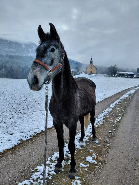 Verkaufe meine liebe Österreichische Warmblut Stute Freya (Diamant). Sie wird sicher noch ein wenig ausschimmeln. Die Maus ist knapp 4 Jahre alt, verbrachte ihre Lebenszeit in einer Herde auf Alm & Wiesen. Sie ist zurzeit +/- 1,67m groß & hat einen total lieben Charakter. Da ich einen Unfall hatte, konnte ich sie leider nicht weiters trainieren. Daher ist sie noch nicht angeritten, kennt aber schon den Gurt. Freya ist wirklich eine brave, umgängliche Stute, rangniedrig & sehr neugierig. Braucht dennoch eine ruhige Hand, die ihr die Welt zeigt & ihr Zeit gibt. Sie ist meist schnell zu überzeugen & macht fleißig mit. Sie ist kein Notverkauf & wird nur in allerbeste Hände übergeben! Nach einen persönlichen Kennenlernen von Pferd & Mensch können wir gerne weiteres Bespreche. Gerne eine WhatsApp/ Nachricht an 0650/5131579