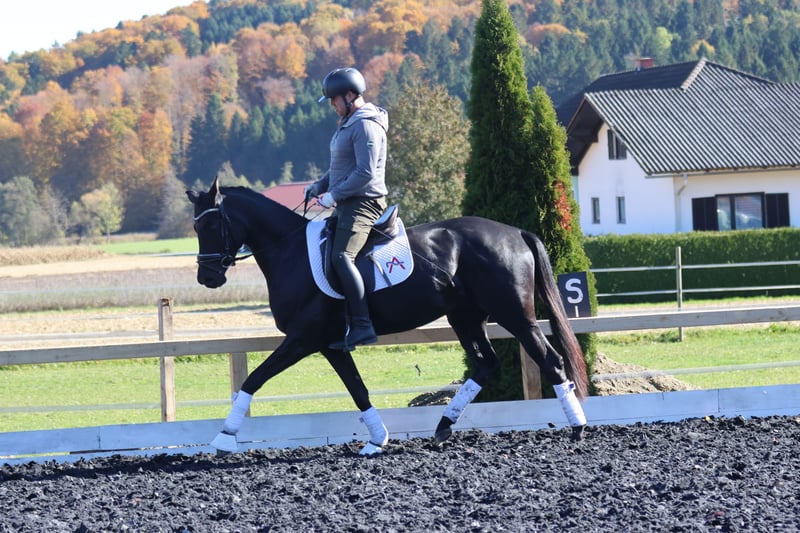 Wir bieten eine bildschöne, lackschwarze 4-jährige Stute zum Verkauf