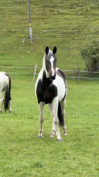 Austrian Warmblood – Pinto Mare, Foaled 2022 This beautiful Austrian Warmblood mare is perfect for all riding disciplines. With her friendly nature and striking appearance, she simply captivates. She is pinto-colored, exudes a lively presence, and measures approximately 16.1 hh. Currently being lunged… Directly from the breeder She is ideally suited for riders seeking a reliable and charming horse for leisure riding. The young mare is healthy, well-trained, and shows great potential for further development. If interested, I am happy to provide more information and arrange a viewing.