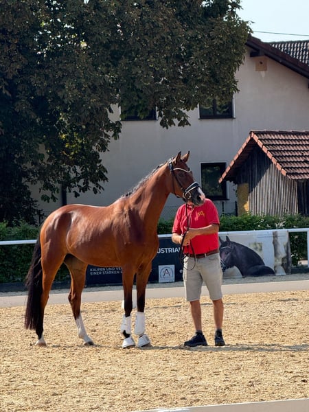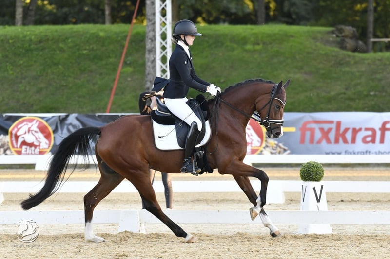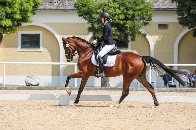 Stella wurde vierjährig angeritten und überzeugt seitdem durch ihre hervorragende Rittigkeit, Leistungsbereitschaft und ihren ausgeglichenen Charakter. Sie ist das ideale Pferd für Reiter, die einen zuverlässigen Partner mit Perspektive im gehobenen Dressursport suchen. Am Turnier präsentiert sie sich stets zuverlässig und punktet mit drei überdurchschnittlichen Grundgangarten. Im vergangenen Jahr konnte sie sich mehrfach in Dressurpferdeprüfungen der Klasse A platzieren und erhielt Teilnoten bis zu 9,0. Als besonderes Highlight erreichte sie beim AWÖ-Bundeschampionat das Finale der 4- bis 5-jähringen Dressurpferde. Aktuell wird sie behutsam und spielerisch auf die Anforderungen der Klasse L vorbereitet. Erfolge 2025: - OÖ Reitpferdechampionat Endnote 8,2; 4. Platz (Trab Tageshöchstnote 9,0) - AWÖ-Bundeschampionat: Reitpferdechampionat 4-jährig: Endnote 7,9 - 13. Platz Dressurpferdechampionat 4 & 5 jährig Kl. A (Finale): Endnote: 7,72 - 11. Platz