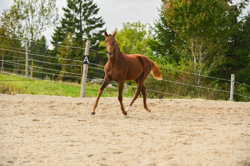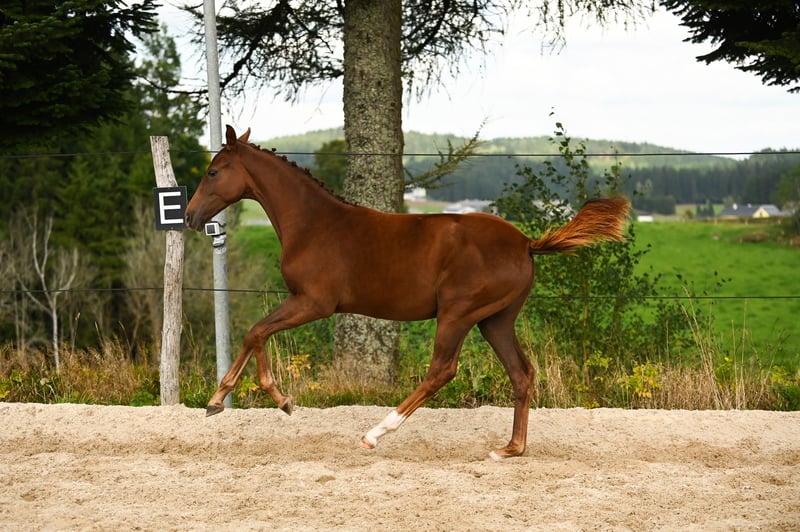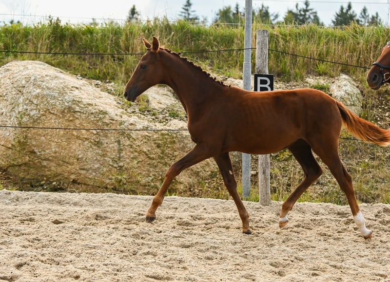 Dornröschen -Eine waschechte Waldviertlerin mit Charakter und schicker Dunkelfuchsjacke! Mit einem lachenden und einem weinenden Auge verkaufe ich meine kleine, selbstgezogene "Rosi". Rosi wird mit sehr viel Herz im großen Herdenverband gemeinsam mit 2 anderen Fohlen aufgezogen. Sie war von der ersten Minute an sehr menschenbezogen und hat schon nach ein paar Stunden alle mit ihrer Persönlichkeit überzeugt. Ihre neugierige, ausdrucksstarke und mutige Art zeugt von Charakterstärke, von der man später im Sport bestimmt profitiert. Ihr schickes und modernes Fundament verdankt sie der guten Abstammung und auch die Gänge lassen ein Nachwuchstalent im Dressursport bei guter Ausbildung nicht nur erahnen! Schon jetzt kennt sie Maschinen, Wasser, Kinder, Hunde, Kühe und alle anderen möglichen lauten Geräusche. Bei der Übergabe beherrscht sie natürlich das komplette Fohlen-ABC. Impfungen, Entwurmungen und ein regelmäßiger Kontrollblick vom Hufschmid sind selbstverständlich! Auch bei kleinen Ausritten war sie schon vorn dabei und weiß sich stets zu benehmen. Sie versucht immer, alles richtig zu machen und gibt permanent ihr Bestes, um einem zu gefallen. Zusammengefasst: Rosi hat einen *top Charakter* und ein hervorragendes Gangbild, sodass sie ihrem zukünftigen Besitzer bestimmt so ans Herz wächst wie uns. Ihr könnt uns gerne jederzeit nach Absprache besuchen. Wir freuen uns darauf, Rosi in liebevolle und erfahrene Hände abzugeben! Platz vor Preis!