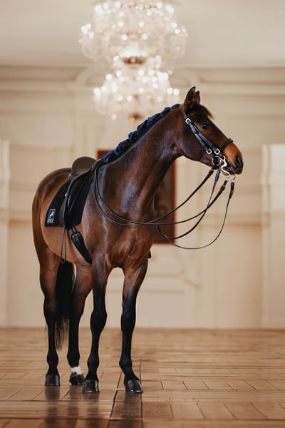 **Sale ad: Austrian Warmblood gelding** An impressive gelding of the Austrian Warmblood breed is for sale. Born in 2016, this bay presents himself with a stately height of 175 cm. This charming gelding not only impresses with his size and elegance, but also with his excellent suitability for dressage. He is willing to work, eager to learn and always eager to please his rider. His training and potential make him an ideal partner for ambitious riders who want to be successful in dressage. For further information or to arrange a viewing, please contact us.