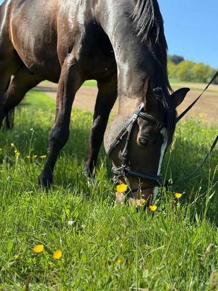 Lovable gelding with very good basic gaits. Chacomo is versatile, enjoys hacking out, and is always eager to perform whether in dressage or jumping. He is easy to handle and comfortable to sit, but not suitable as a beginner's horse. Chacomo is familiar with both pasture turnout and stable life. We are looking for a loving home where someone has plenty of time for him and can provide the mental and physical stimulation he needs.
