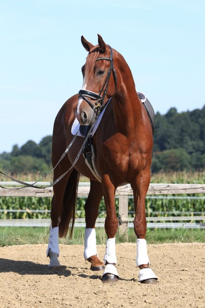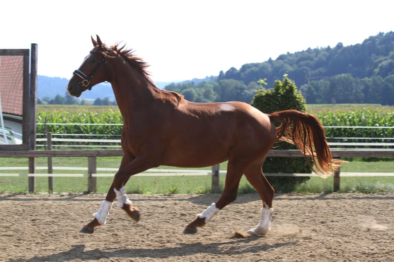 Wij bieden een uitzonderlijke jonge ruin te koop aan, die alle vereisten voor een succesvolle carrière in de dressuursport met zich meebrengt. Viento, een zoon van de gerenommeerde hengst Va Bene, maakte al indruk als veulen tijdens het kampioenschap, waar hij in de eindring een uitstekende beoordelingsscore van 9,5 voor zijn beweging ontving. Zijn basisgangen zijn bovengemiddeld goed, waarbij vooral zijn uitstekende stap opvalt. Hij beschikt ook over een dynamische draf en een krachtige galop, die van hoge kwaliteit getuigen. Viento wordt momenteel voorzichtig voorbereid op zijn toekomstige taak. Hij wordt al aangelijnd en gewend aan het ruitergewicht. Vanwege zijn uitstekende kwaliteit en potentieel zal zijn prijs met de voortgang van de opleiding stijgen. Dit paard is ideaal voor ambitieuze dressuurrijders die een getalenteerd paard vanaf de basis zelf willen opleiden. Hij is een waar juweel dat een veelbelovende toekomst voor zich heeft.