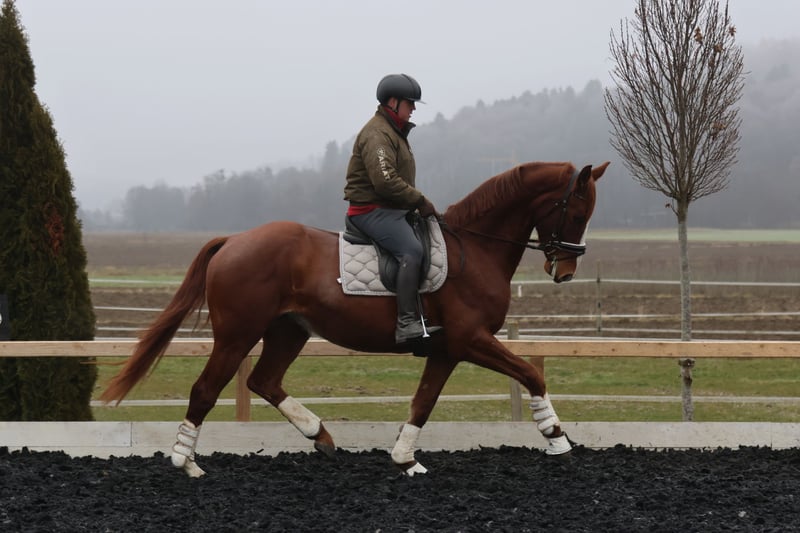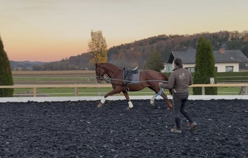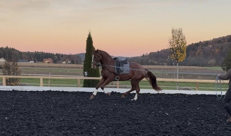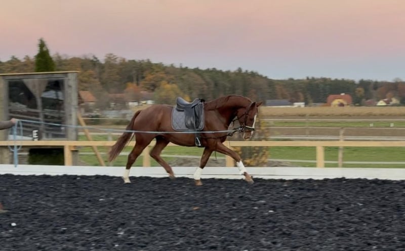 Wir bieten einen außergewöhnlichen jungen Wallach zum Verkauf an, der alle Voraussetzungen für eine erfolgreiche Karriere im Dressursport mitbringt. Viento, ein Sohn des renommierten Hengstes Va Bene, beeindruckte bereits als Fohlen beim Championat, wo er im Endring eine herausragende Bewertungsnote von 9,5 für seine Bewegung erhielt. Seine Grundgangarten sind überdurchschnittlich gut, wobei insbesondere sein überragender Schritt hervorsticht. Er verfügt zudem über einen dynamischen Trab und eine kraftvolle Galoppade, die von großer Qualität zeugen. Viento wird derzeit schonend auf seine zukünftige Aufgabe vorbereitet. Er wird bereits anlongiert und an das Reitergewicht gewöhnt. Aufgrund seiner herausragenden Qualität und seines Potenzials wird sein Preis mit fortschreitender Ausbildung steigen. Dieses Pferd ist ideal für ambitionierte Dressurreiter, die ein talentiertes Pferd von Grund auf selbst ausbilden möchten. Er ist ein wahres Juwel, das eine vielversprechende Zukunft vor sich hat.