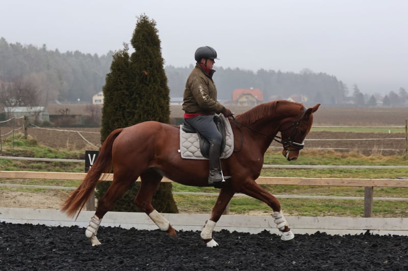 Oferujemy na sprzedaż wyjątkowego młodego wałacha, który posiada wszystkie predyspozycje do odniesienia sukcesów w sporcie ujeżdżeniowym. Viento, syn renomowanego ogiera Va Bene, już jako źrebię zrobił duże wrażenie podczas championatu, zdobywając w finałowej rundzie wyjątkową ocenę 9,5 za swoje ruchy. Jego podstawowe chody są ponadprzeciętnie dobre, a szczególnie wyróżnia się jego znakomity krok. Posiada także dynamiczny stęp oraz mocne kłusy, które świadczą o ich wysokiej jakości. Viento jest już delikatnie przygotowywany do przyszłych zadań – jest lonżowany i przyzwyczajany do ciężaru jeźdźca. Ze względu na jego wyjątkową jakość i potencjał, jego cena będzie rosła w miarę postępującej edukacji. Ten koń jest idealny dla ambitnych jeźdźców ujeżdżeniowych, którzy chcą samodzielnie wykształcić utalentowanego partnera od podstaw. To prawdziwy skarb z obiecującą przyszłością.