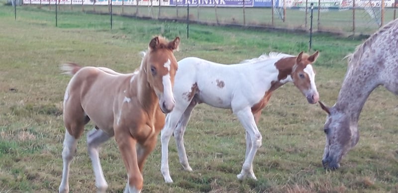 If you are looking for something truly special, CHARLIE and FLASH are exactly right for you... My foal crop is really something to see... CHARLIE is a Pintaloosa with a chestnut spotted appearance... He was born on July 31, 2025... FLASH is a Paint in gold champagne tobiano, he was born on June 19, 2025... Their father is INDIAN BIGSTEP, a Paint Horse stallion with a great character, body, and charm; he has also been successfully shown in the Netherlands... CHARLIE's mother is my typy, strong Appaloosa mare Bella with a great character and good movements... FLASH's mother is my typy Quarter mare Josey, she is also very people-oriented, good-natured with her character... Both foals will receive a chip and an E-pass... They already have a super strong build. Both have an excellent body structure, show great muscles, and beautiful movements... They will both have a final height of approximately 155 cm +/-. They are learning the foal ABC and everything else one needs to know at this age... Both are curious, playful, and trusting towards humans... Since we live directly on 2 main roads, they are familiar with all kinds of loud noises, such as tractors or road traffic or sirens, and are not easily disturbed... Price for Charlie: 4000 Euros Price for Flash: 5000 Euros If someone wants both, we could discuss the price...