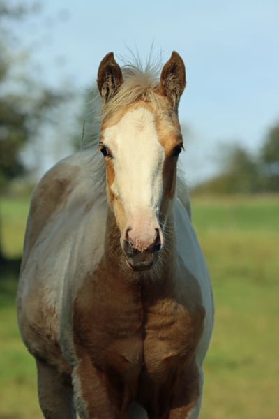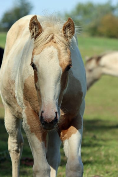 CHEYENNES HARRAHS Palomino Tobiano APHA Stute Geboren: 20.05.2025 Endgrösse ca 155 cm 7 Panel N/N ee aa CRcr Tt