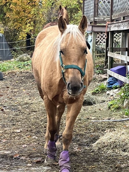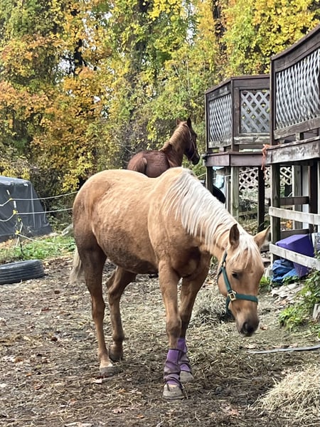 Precious is a beautiful 25 palomino Quarter Horse. She was out of Registered stock I’m told but was shipped to auction with other horses. She sells as grade. Her demeanor and temperament are so chill. I named her Precious bc that’s exactly who she is. I can do anything with her with no resistance. She is not broke, but I have done some ground work. I rescued her back in August 2025 and I spent the last months allowing her to just be a horse and building bonds and trust with me and others.