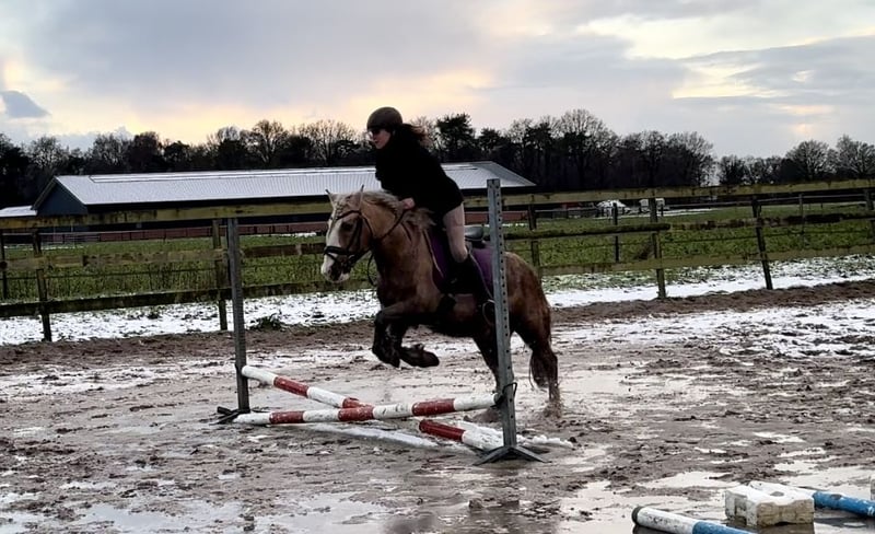 Super fun all-round pony. Lucky is a friendly pony that enjoys being active. Lucky is well-behaved in the stable, easy to handle, loves to play with her herd mates, and is always up for a good grooming! She is well-behaved under saddle and a pleasure to ride. She jumps nicely and is traffic-proof.
