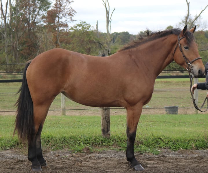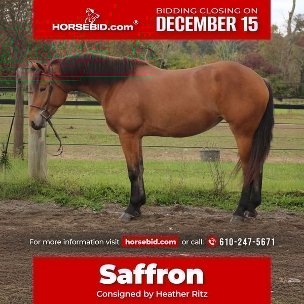 🎄𝐓𝐇𝐄 𝑯𝒐𝒍𝒊𝒅𝒂𝒚 𝐂𝐋𝐀𝐒𝐒𝐈𝐂🎄 Happening now thru MONDAY | DECEMBER 15th - Available EXCLUSIVELY on HorseBid's website! For more details and to register visit: www.Horsebid.com CONSIGNOR CONTACT: Heather Ritz - Imagine Equestrian 610-247-5671 LOCATION: Perkasie, PA BREED: Percheron X REGISTERED: No COLOR: Bay HEIGHT: 16 AGE: 4 GENDER: Mare Saffron 2021 Percheron X mare. Saffron stands at 16 hands with a stocky build. She is sound with no known injuries or maintenance. She is up to date. She is currently turned out in a mixed herd and gets along well with others. She is not mareish at all. Saffron doesn’t crib, bite, kick, or weave. In the barn, Saffron is a sweet loving girl with a kind eye. She loves attention and likes to connect with people. She stands tied, clips, bathes, loads, and is good for the vet/farrier. Saffron is easy to catch and hauls well. In the arena, Saffron rides both english and western. She stands to be mounted from the ground or by a block. Saffron walk trot canters both directions and picks up both leads. She is started over fences and is a natural. She will jump filler, cross country fences, and is honest to a jump. Saffron is very willing and safe. Saffron has experience out on the trails both alone and in a group. She has been exposed to dogs, bridges, water, and traffic. Saffron has a solid foundation and is ready to go in any direction. No buck, rear, bolt, spook