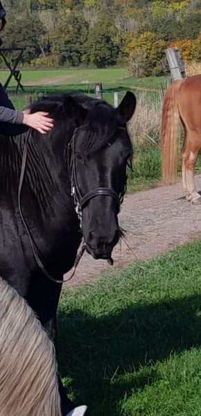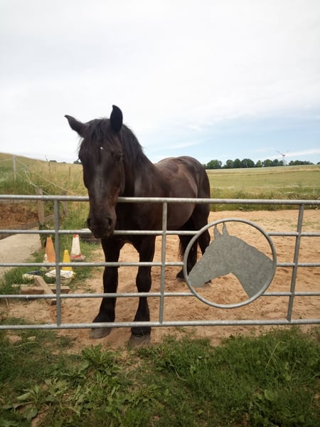 Zum Verkauf steht unser Percheron mit Französichem Papier, da wir ihm zeitlich nicht gerecht werden. Er steht in Offenstallhaltung, ist sehr robust und kerngesund. Bei uns läuft er barhuf, ist brav beim Hufschmied und wurde einmalig bei uns beschlagen. Als 3jähriger wurde er angefahren, er ist seit 2017 in unserem Besitz und wird freizeitmässig geritten, ist unerschrocken im Gelände. Eliot ist in der Herde ist ranghoch, allerdings unterm Sattel auch mit fremden Pferden sehr verträglich. Vom Charakter ist er anhänglich, menschenbezogen, arbeitswillig allerdings kein Anfängerpferd.
