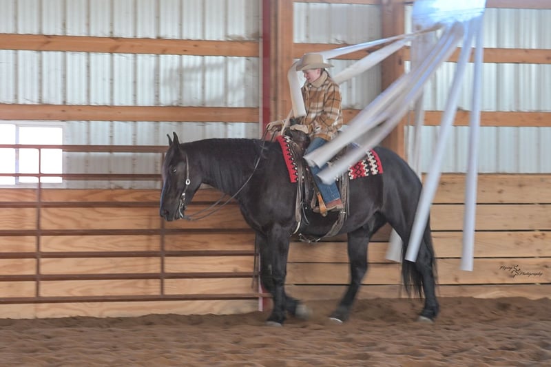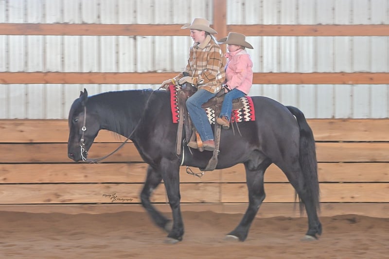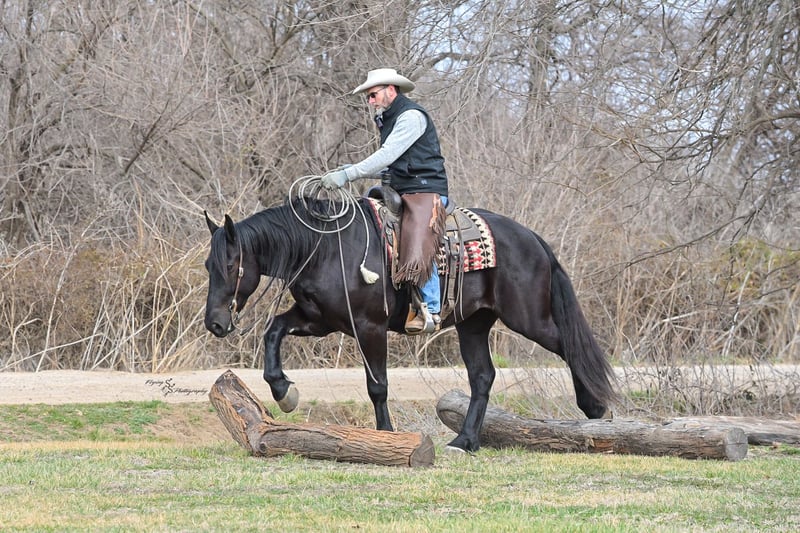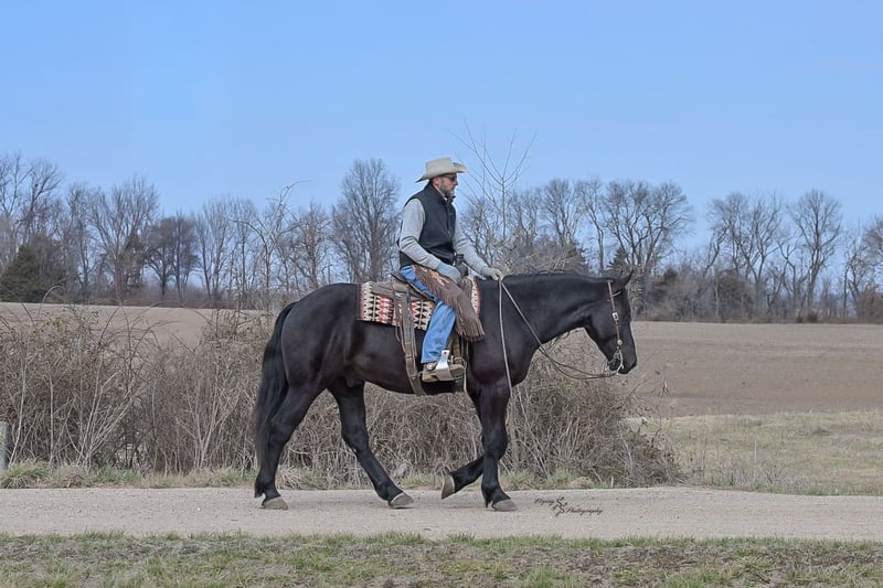 ⚜️𝓽𝓱𝓮 𝐆𝐎𝐋𝐃 𝓢𝓮𝓵𝓮𝓬𝓽⚜️ Happening now thru MONDAY | MARCH 23rd - Available EXCLUSIVELY on HorseBid's website! For more details and to register visit: www.Horsebid.com CONSIGNOR CONTACT: Yoder Family Horses 417-432-1088 LOCATION: Harwood, MO BREED: Percheron x Quarter Horse Crossbred REGISTERED: No REGISTERED NAME: Raven COLOR: Black HEIGHT: 16 AGE: 4 GENDER: Gelding Meet Raven; an exceptionally well-trained crossbred gelding that is a real pleasure to saddle up and ride! Raven is a 2022 model Percheron x Quarter Horse gelding that stands 16h and wears a #4 shoe. He is a true gentle giant that always loves attention, being groomed, saddled and ridden. He has been on our farm approximately one year and has been used for various farm work under harness as a team with other draft horses. Plus, he has been in steady training in our program as a saddle horse for a full year. Raven rides around handier than most crossbreds with a smooth collected trot and lope. He has a nice, steady ground covering walk that is perfect for riding the trails. He lopes even circles, correctly picking up his leads on cue, and has a fantastic stop for a crossbred. Raven is a horse that the entire family can truly enjoy. He has been ridden by complete beginners, young children, and trainers; he gets along with everyone! Raven enjoys trail obstacles and is very confident, steady and surefooted, no matter what you encounter on the trails. If you like a horse that wants to be your buddy each and every day, here he is! He is respectfully in your pocket. Raven is always super easy to catch and has perfect ground manners. He stands patiently to groom, tack, bathe and shoe. He also stands at the mounting block to be mounted or dismounted. He doesn't mind standing tied for hours and loads willingly in a trailer. Raven has always been perfectly sound and healthy; and has no scars, blemishes, or bad habits. He sells 100% sound in every way and even comes with a current Pre-Purchase exam. If you have any questions or would like to meet Raven prior to the auction ending, please CALL us at 417-432-1088.