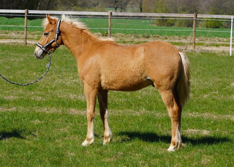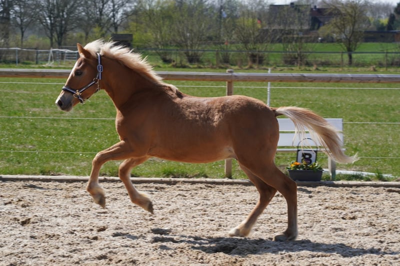 Verkaufe jungen Pinto-Hengst, geb. 31.05.2025, in wunderschönem Fuchsfell. Dieser vielversprechende Nachwuchshengst überzeugt durch sein freundliches Wesen und sein ausgeglichenes Temperament – ideal für die Freizeitgestaltung. Mit seiner Kombi - Mama Staatsprämien Haflingerstute mit durchweg prämierten Fohlen - Papa Pintohengst mit sehr guten Nachkommen und selber im Sport bis zur Klasse A erfolgreich und L fertig - haben wir hier ein tolles Gut aber sportlich gebautes Pony, dass auch für erwachsene Reiter ein toller Begleiter ist. Breaky besitzt ein volles Pintopapier und wäre mir Erbnachweis (sofern er bunt vererbt) auch für die Zucht nicht uninteressant. Der Hengst ist gut sozialisiert, leicht im Umgang und zeigt bereits erste Grundgangarten. Perfekt geeignet für alle, die ein vielseitiges Freizeitpferd mit besonderem Charme suchen. Er wurde bereits von Kindern geputzt und zeigt sich hier stets artig, dennoch ist es eben ein junger Hengst, der kein reines Kinderpony ist. Langfristig kann ich ihn mir als tolles Kinderlehrpony vorstellen. Ich kann mir Breaky sehr gut im gehobenen Freizeitbereich, als auch im Turnierberech vorstellen. Neuem gegenüber ist er vorsichtig aber offen und neugierig und hat bisher alles mit Bravour gemeistert. Er ist bereits Anhänger und Transporter gefahren und geht auf diese auch mit etwas Ruhe und Zeit selbstständig rauf. Da wir erst im Januar in den jetzigen Stall gezogen sind, bitte ich beim Kauf den Junghengst bis mindestens Herbst 2026 dort zu belassen, da auch sein Freund sonst alleine wäre. Bevorzugt sollten die Jungs bis Frühjahr 2027 zusammen bleiben. Einen Vollpensionsplatz hat er dort natürlich, falls jemand von weiter weg kommt. Bei Interesse stehe ich gerne für weitere Informationen und eine Besichtigung zur Verfügung.
