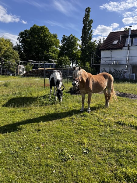 h muss schweren Herzens meine 2 tollen Stuten abgeben. Vorrangig zusammen im Doppelpack :) Arina (Pinto) 12 Jahre alt, 158cm Western geritten freizeitmässig. Sie geht gerne ins Gelände aber auch die Arbeit auf dem Platz oder Arbeiten vom Boden machen ihr sehr viel Spaß und sie lernt schnell dazu. Im Winter wenn es richtig eisig ist braucht sie eine Decke (gebe ihre Decken mit) weil sie sonst etwas steif wird. (Pssm 2) Sie kennt das draußen leben Tag und Nacht. Beim Satteln ist sie manchmal etwas hibbelig und man merkt immer wenn sie rossig ist, Stute halt ;) Sie testet neue Reiter gerne aus, bei mir ist sie noch nie bösartig gebuckelt aber sie bleibt dann gerne stehen oder versucht dahin zu gehen wo sie gerne möchte.wenn man einmal ihr Vertrauen gewonnen hat, macht sie fast alles mit einem. Sie stand auch schon in einer gemischten Offenstallherde. Läuft barhuf. 5000€ VHB Bella (Haflinger) 15 Jahre alt mit Abstammung Habe ich selber erst vor 7 Monaten übernommen. Sie soll laut Vorbesitzer gefahren sein, habe es selber noch nicht ausprobiert. Bin sie ein paar mal geritten, das macht sie sehr lieb auch wenn sie noch nicht viel kann. Ich gebe sie trotzdem ausdrücklich als roh ab. Spazieren gehen und arbeiten vom Boden aus macht sie wunderbar mit, sie ist eine absolute Kuschelmaus und hat bisher alles super lieb gemacht was ich mit ihr probiert habe. Sie hatte hier einmal kurz hufrehe weil sie von Eisen auf barhuf umgestellt wurde. (Belastungsrehe) Sie läuft jetzt aber wieder gut, brauchte auch keine Medikamente und hat danach auch wieder normal Weide vertragen ohne einen weiteren Schub zu bekommen. Für spazieren gehen etc. Habe ich hufschuhe die ich auch mitgeben würde. 3500€ VHB Ich hätte für beide einiges an Zubehör, falls Bedarf besteht kann ich es gegen Aufpreis mitgeben. Beide sind geimpft und entwurmt. Ich suche vorerst ein Zuhause für Beide zusammen und würde auch einen deutlich günstigeren Komplettpreis (7000€) machen weil es mich sehr freuen würde wenn die beiden zusammen was schönes finden. Meldet euch gerne wenn ihr die beiden mal persönlich kennen lernen wollt oder Fragen habt, man kann über alles reden. Liebe Grüße Julia