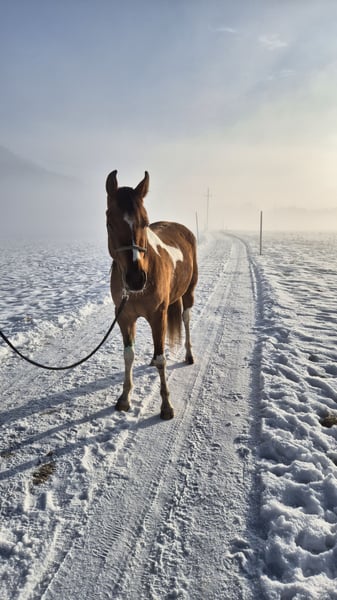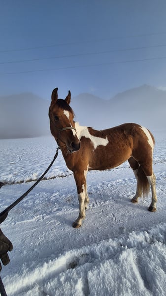 Maia ist eine im März 2023 geborene Pinto-Mix Stute mit viel Go Ca. 145cm groß & gesund Sie ist eine sehr aufgeweckte, freundliche Stute & brav händelbar. Die kleine ist noch roh, ist aber an Verkehr, Traktor & andere Tiere gewöhnt. Sie hat noch einiges zu lernen, zeigt sich aber stets bemüht- ist dem Alter entsprechend trotzdem gern mal abgelenkt. Sie bräuchte jemanden, der sich gut auskennt & bereit ist mit ihr einiges zu schaffen & sich viel zu beschäftigen. Ich denke Maia wäre total toll in der Vielseitigkeit. Springen, Western & Wanderreiten könnt ich sie mir auch sehr gut vorstellen. Nach einen persönlichen Kennenlernen von Pferd & Mensch können wir gerne weiteres besprechen